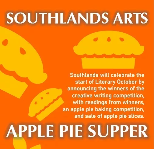 Apple Pie Supper – Saturday, 5th October 2024, the winners of the Southlands writing competition are announced. Plus, you can treat yourself to a slice of apple pie or enter the pie-making competition.